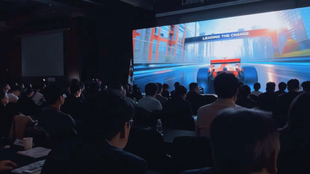 1인칭 주행 시점의 몰입형 착시 연출을 더해 컨퍼런스 오프닝에 맞는 높은 몰입감을 확보했습니다.